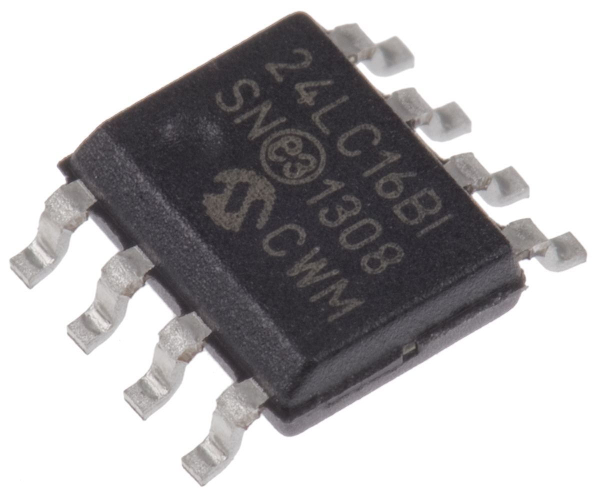This is Serial EEPROM Memory 16kbit 900ns 2.5 → 5.5 V 8-Pin SOIC manufactured by Microchip. The manufacturer part number is 24LC16B-I/SN. Its data retention capability is up to 200yr . The given dimensions of the product include 4.9 x 3.9 x 1.25mm. The product is available in surface mount configuration. It has 8 block x 256 words . The product has 8 block x 256 x 8 bit organisation configuration. Whereas, the minimum operating temperature of the product is -40 °c. While its minimum operating supply voltage is 2.5 v. It exhibits 8bit per word . The product complies with automotive standard - aec-q100. It holds a typical memory size of 16kbit. The package is a sort of soic. It is a type of serial-i2c interface. Its standard programming voltage is 2.5 → 5.5v . The product exhibits a maximum 900ns random access time . It has 5.5 v maximum operating supply voltage. It has a maximum operating temperature of +85 °c. It contains 8 pins.