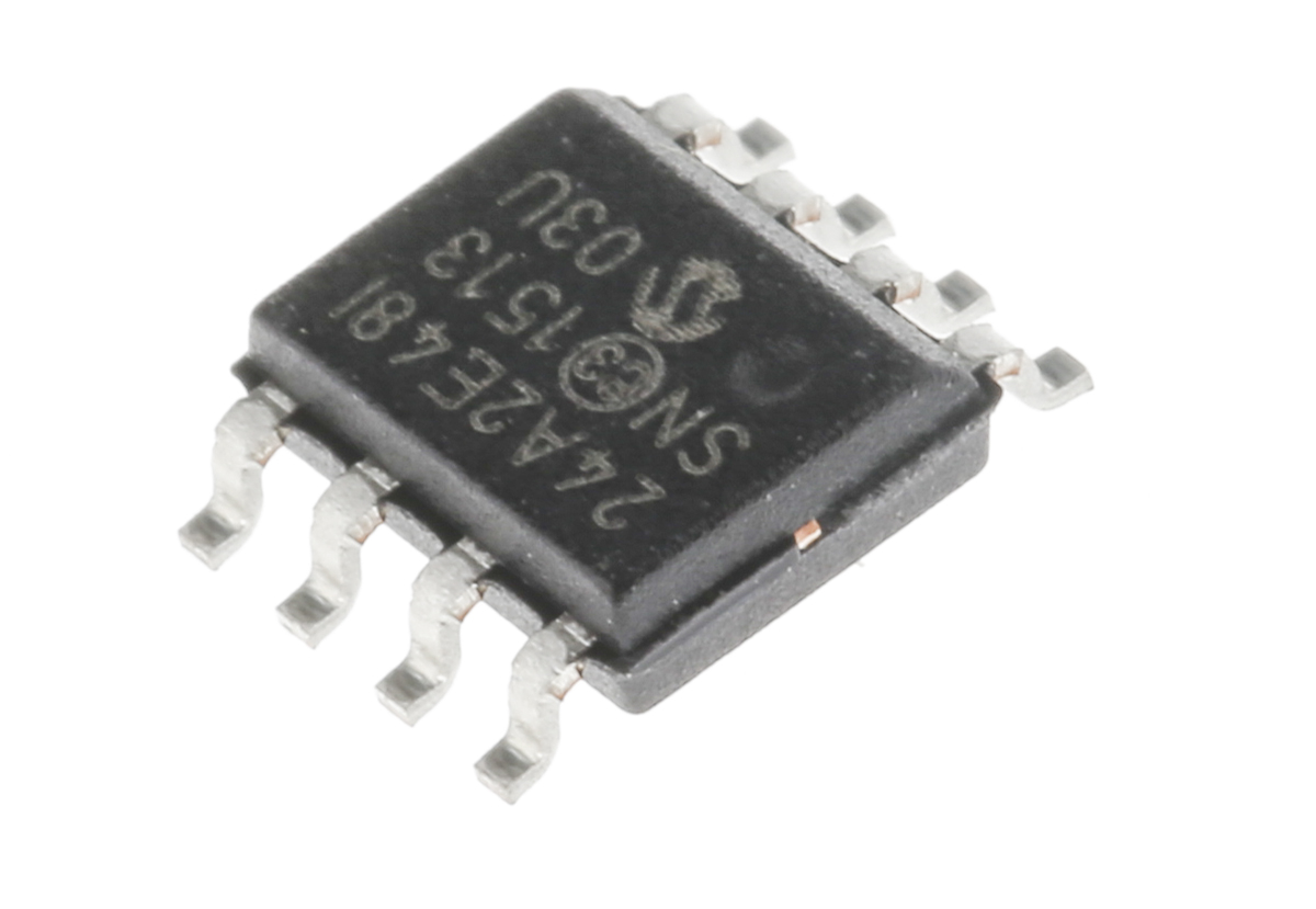 This is Serial EEPROM Memory 2kbit 3500ns 1.7 → 5.5 V 8-Pin SOIC manufactured by Microchip. The manufacturer part number is 24AA02E48-I/SN. Its data retention capability is up to 200yr . The given dimensions of the product include 4.9 x 3.9 x 1.25mm. The product is available in surface mount configuration. It has 256 words . The product has 256 x 8 bit organisation configuration. Whereas, the minimum operating temperature of the product is -40 °c. While its minimum operating supply voltage is 1.7 v. It exhibits 8bit per word . It holds a typical memory size of 2kbit. The package is a sort of soic. It is a type of serial-i2c interface. Its standard programming voltage is 1.7 → 5.5v . The product exhibits a maximum 900ns random access time . It has 5.5 v maximum operating supply voltage. It has a maximum operating temperature of +85 °c. It contains 8 pins.