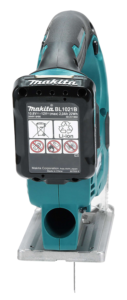 The Makita JV101DZ is a cordless jigsaw that operates at 10.8V and is sold as a body-only unit, allowing users to utilize existing batteries and chargers from their Makita collection. Its 18mm stroke length and a no-load speed of 2900 strokes per minute (ppm) are designed for precision cutting across a variety of materials. Its compact design, combined with its cutting capabilities, makes it a go-to choice for a wide array of cutting tasks in various materials, ensuring high-quality results with every use.