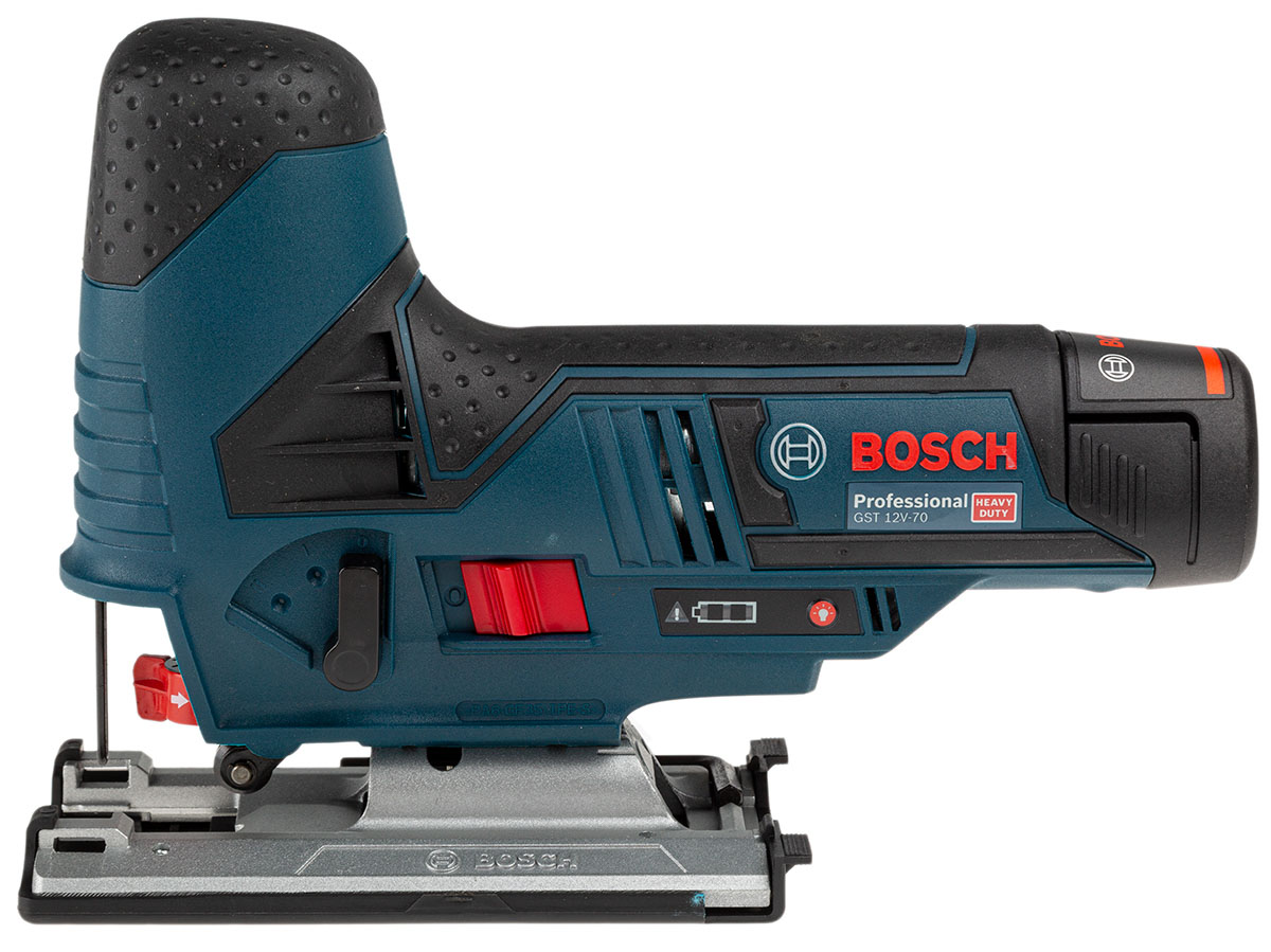 This is GST 12V-70 12V Cordless Jigsaw 18mm stroke 1.5 → 2.8spm manufactured by Bosch. The manufacturer part number is 06015A1005. It has about 3ah battery capacity . In addition, it has a standard 12v battery voltage . This high-efficiency motor is a brushed. The given stroke is 18mm long. The typical product's weight is 1.5kg. It includes 2 batteries . The product gst, is a highly preferred choice for users. It has an overall width of 76mm. Additionally, it has about 70mm cutting depth . It has an overall length of 218mm. Additionally, the product is cordless . saw is a versatile product designed to provide user-defined applications. Moreover, it has 168mm of overall height.