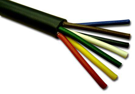 This is Interconnection Trailer Cable Electrical Wiring Cable 7 Core Black 25m 1 (6 Core) mm² 2 (1 Core) mm² CSA manufactured by RS Pro. The manufacturer part number is 122-3067. The product has a current rating of 8.75 a @ 1 mm², 17.5 a @ 2 mm². The sheath is constructed from durable and adorable polyvinyl chloride pvc material. The conductor has <14.1 ω/km resistance. Moreover, the product has a nominal 300 v voltage rating. The conductor is made from copper material. The product interconnection, is a highly preferred choice for users. The strand size includes 1.3 mm, 1.84 mm. The sheath has an adorable black colour. Its accurate length is 25m. It has a robust pvc insulation material. The product consists of 7 cores. It has a stranded type conductor strand . It has a maximum operating temperature of +80°c. Its outer diameter is 10.2mm. The product has 1 (6 core) mm², 2 (1 core) mm² cross section area.