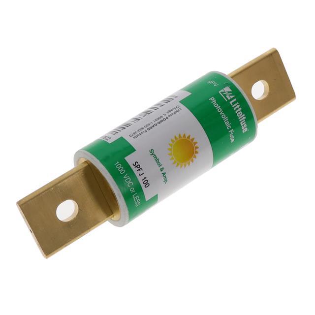 This is manufactured by Littelfuse Inc.. The manufacturer part number is SPFJ100.X. It is assigned with possible HTSUS value of 8536.10.0040. The product is rohs3 compliant. Whereas, the breaking capacity of the product at rated voltage is 20ka. 1 kvdc of DC voltage rating. It is approved by ce, ul. Moreover, the product comes in cylindrical, blade terminal (bolt). In addition, it is reach unaffected. The product is widely employed in solar (photovoltaic). The DC cold resistance of the item is 1.243 mohms. It responds within fast blow. Class Information: j. It is shipped in box package . The product's diameters include 1.500" dia x 3.012" l (38.10mm x 76.50mm). It has a long 10 weeks standard lead time. Additionally, the product's output is 100a. Its typical moisture sensitivity level is 1 (unlimited). The product is available in bolt mount configuration. The product powr-gard® spfj, is a highly preferred choice for users. It integrates a cartridge fuse type. The product is designated with the ear99 code number.