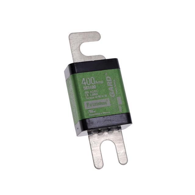This is manufactured by Littelfuse Inc.. The manufacturer part number is 0581400.X. It is assigned with possible HTSUS value of 8536.10.0040. The product is rohs3 compliant. Whereas, the breaking capacity of the product at rated voltage is 2.5ka. 48 vdc of DC voltage rating. It is approved by ur. Moreover, the product comes in rectangular, blade. The product exhibits 48 vac of AC voltage rating. In addition, it is reach unaffected. The product is widely employed in lift trucks. It responds within fast blow. It is shipped in bulk package . The product's diameters include 3.228" l x 1.195" w x 0.683" h (82.00mm x 30.35mm x 17.35mm). It has a long 18 weeks standard lead time. Additionally, the product's output is 400a. Its typical moisture sensitivity level is not applicable. The product is available in bolt mount configuration. The product powr-gard® hazgard, is a highly preferred choice for users. It integrates a fuse strip fuse type. The product is designated with the ear99 code number.