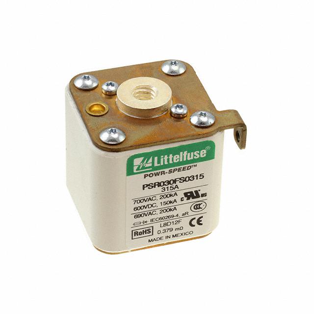 This is manufactured by Littelfuse Inc.. The manufacturer part number is PSR030FS0315Z. It is assigned with possible HTSUS value of 8536.10.0040. The product is rohs3 compliant. Whereas, the breaking capacity of the product at rated voltage is 200ka ac, 150ka dc. 600 vdc of DC voltage rating. The product has -55°c ~ 125°c operating temperature range. It is approved by ccc, ce, curus, ul. The product exhibits 700 vac of AC voltage rating. In addition, it is reach unaffected. The product is widely employed in semiconductors. It responds within fast blow. The littelfuse inc.'s product offers user-desired applications. The product's diameters include 1.969" l x 1.693" w x 1.929" h (50.00mm x 43.00mm x 49.00mm). It has a long 30 weeks standard lead time. Additionally, the product's output is 315a. Its typical moisture sensitivity level is not applicable. The product is available in bolt mount configuration. The product powr-speed® psr, is a highly preferred choice for users. In addition, bulk is the available packaging type of the product. It integrates a square fuse type. The product is designated with the ear99 code number.