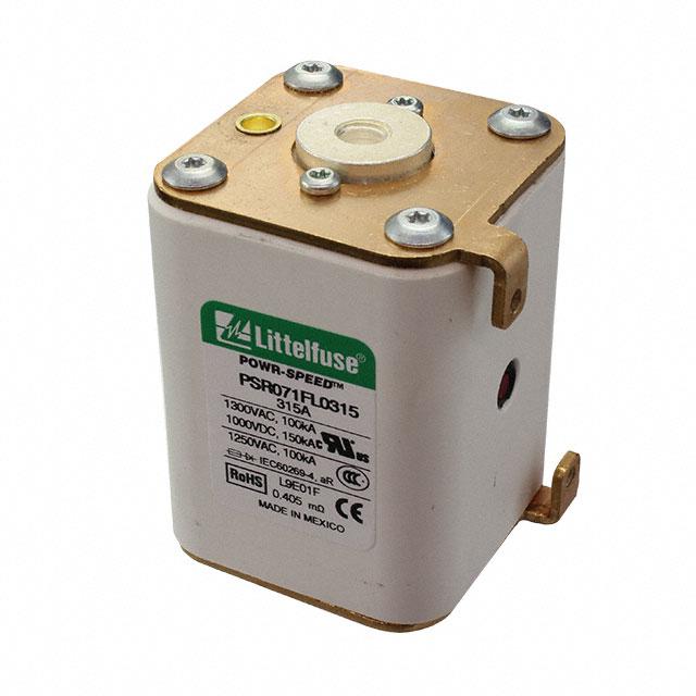 This is manufactured by Littelfuse Inc.. The manufacturer part number is PSR071FL0315Z. It is assigned with possible HTSUS value of 8535.10.0040. The product is rohs3 compliant. Whereas, the breaking capacity of the product at rated voltage is 100ka ac, 150ka dc. 1 kvdc of DC voltage rating. The product has -55°c ~ 125°c operating temperature range. It is approved by ccc, ce, curus, ul. The product exhibits 1.3 kvac of AC voltage rating. In addition, it is reach unaffected. The product is widely employed in semiconductors. It has a 21859 melting I²t. It responds within fast blow. It is shipped in bulk package . The product's diameters include 2.913" l x 2.028" w x 2.264" h (74.00mm x 51.50mm x 57.50mm). It has a long 10 weeks standard lead time. Additionally, the product's output is 315a. Its typical moisture sensitivity level is not applicable. The product is available in bolt mount configuration. The product powr-speed® psr, is a highly preferred choice for users. It integrates a square fuse type. The product is designated with the ear99 code number.