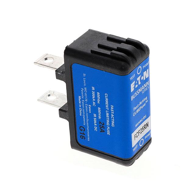 This is manufactured by Eaton - Bussmann Electrical Division. The manufacturer part number is FCF25RN. It is assigned with possible HTSUS value of 8536.10.0040. The product is rohs compliant. Whereas, the breaking capacity of the product at rated voltage is 300ka ac, 50ka dc. 600 vdc of DC voltage rating. It is approved by ce, csa, ul. Moreover, the product comes in blade type, module. The product exhibits 600 vac of AC voltage rating. The product is widely employed in electrical, industrial. It responds within fast blow. It is shipped in bulk package . The product's diameters include 1.880" l x 0.750" w x 1.280" h (47.75mm x 19.05mm x 32.51mm). It has a long 14 weeks standard lead time. Additionally, the product's output is 25a. Its typical moisture sensitivity level is not applicable. The product is available in requires holder configuration. The product fcf, is a highly preferred choice for users. It integrates a rectangular fuse type. The product is designated with the ear99 code number.