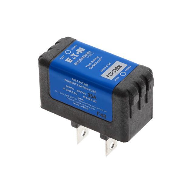 This is manufactured by Eaton - Bussmann Electrical Division. The manufacturer part number is FCF35RN. It is assigned with possible HTSUS value of 8536.10.0040. The product is rohs compliant. Whereas, the breaking capacity of the product at rated voltage is 300ka ac, 50ka dc. 600 vdc of DC voltage rating. It is approved by ce, csa, ul. Moreover, the product comes in blade type, module. The product exhibits 600 vac of AC voltage rating. The product is widely employed in electrical, industrial. It responds within fast blow. It is shipped in bulk package . The product's diameters include 2.130" dia x 1.000" l (54.10mm x 25.40mm). It has a long 5 weeks standard lead time. Additionally, the product's output is 35a. Its typical moisture sensitivity level is not applicable. The product is available in through hole configuration. The product fcf, is a highly preferred choice for users. It integrates a rectangular fuse type. The product is designated with the ear99 code number.