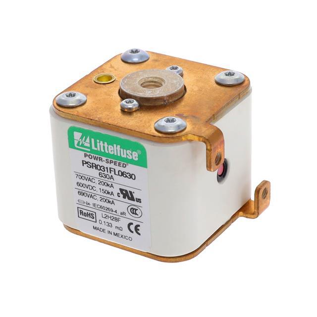 This is manufactured by Littelfuse Inc.. The manufacturer part number is PSR031FL0630Z. It is assigned with possible HTSUS value of 8536.10.0040. The product is rohs3 compliant. Whereas, the breaking capacity of the product at rated voltage is 200ka ac, 150ka dc. 600 vdc of DC voltage rating. The product has -55°c ~ 125°c operating temperature range. It is approved by ccc, ce, curus, ul. The product exhibits 700 vac of AC voltage rating. In addition, it is reach unaffected. The product is widely employed in semiconductors. It has a 73513.0 melting I²t. It responds within fast blow. The littelfuse inc.'s product offers user-desired applications. The product's diameters include 1.969" l x 2.028" w x 2.264" h (50.00mm x 51.50mm x 57.50mm). It has a long 15 weeks standard lead time. Additionally, the product's output is 630a. Its typical moisture sensitivity level is not applicable. The splendid features of the product include indicating. The product is available in bolt mount configuration. The product powr-speed® psr, is a highly preferred choice for users. In addition, box is the available packaging type of the product. It integrates a square fuse type. The product is designated with the ear99 code number.