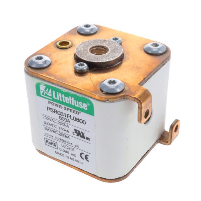 This is manufactured by Littelfuse Inc.. The manufacturer part number is PSR031FL0800Z. It is assigned with possible HTSUS value of 8536.10.0040. The product is rohs3 compliant. Whereas, the breaking capacity of the product at rated voltage is 200ka ac, 150ka dc. 600 vdc of DC voltage rating. The product has -55°c ~ 125°c operating temperature range. It is approved by ccc, ce, curus, ul. The product exhibits 700 vac of AC voltage rating. In addition, it is reach unaffected. The product is widely employed in semiconductors. It has a 137208.0 melting I²t. It responds within fast blow. The littelfuse inc.'s product offers user-desired applications. The product's diameters include 1.969" l x 2.028" w x 2.264" h (50.00mm x 51.50mm x 57.50mm). It has a long 10 weeks standard lead time. Additionally, the product's output is 800a. Its typical moisture sensitivity level is not applicable. The splendid features of the product include indicating. The product is available in bolt mount configuration. The product powr-speed® psr, is a highly preferred choice for users. In addition, box is the available packaging type of the product. It integrates a square fuse type. The product is designated with the ear99 code number.