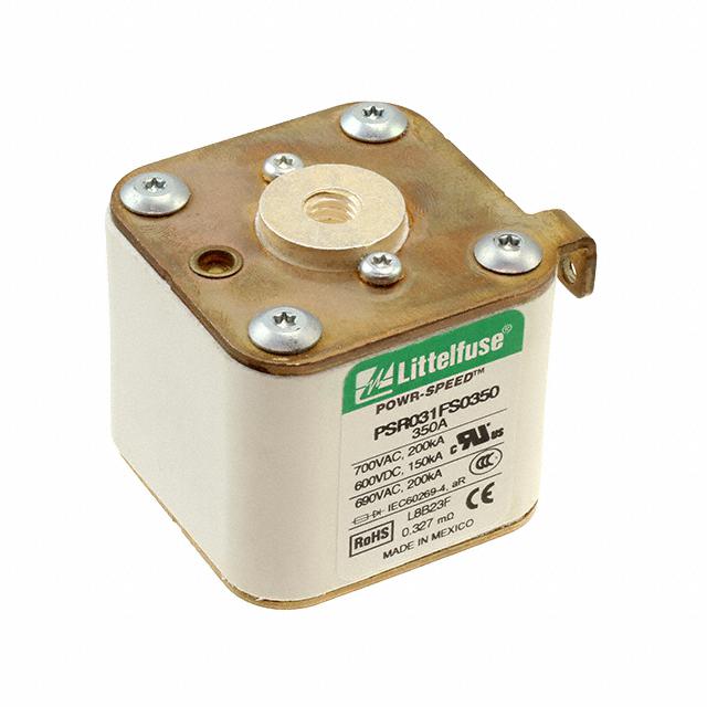 This is manufactured by Littelfuse Inc.. The manufacturer part number is PSR031FS0350Z. It is assigned with possible HTSUS value of 8536.10.0040. The product is rohs3 compliant. Whereas, the breaking capacity of the product at rated voltage is 200ka ac, 150ka dc. 600 vdc of DC voltage rating. The product has -55°c ~ 125°c operating temperature range. It is approved by ccc, ce, curus, ul. The product exhibits 700 vac of AC voltage rating. In addition, it is reach unaffected. The product is widely employed in semiconductors. It responds within fast blow. The littelfuse inc.'s product offers user-desired applications. The product's diameters include 1.969" l x 2.028" w x 2.264" h (50.00mm x 51.50mm x 57.50mm). It has a long 30 weeks standard lead time. Additionally, the product's output is 350a. Its typical moisture sensitivity level is not applicable. The product is available in bolt mount configuration. The product powr-speed® psr, is a highly preferred choice for users. In addition, bulk is the available packaging type of the product. It integrates a square fuse type. The product is designated with the ear99 code number.