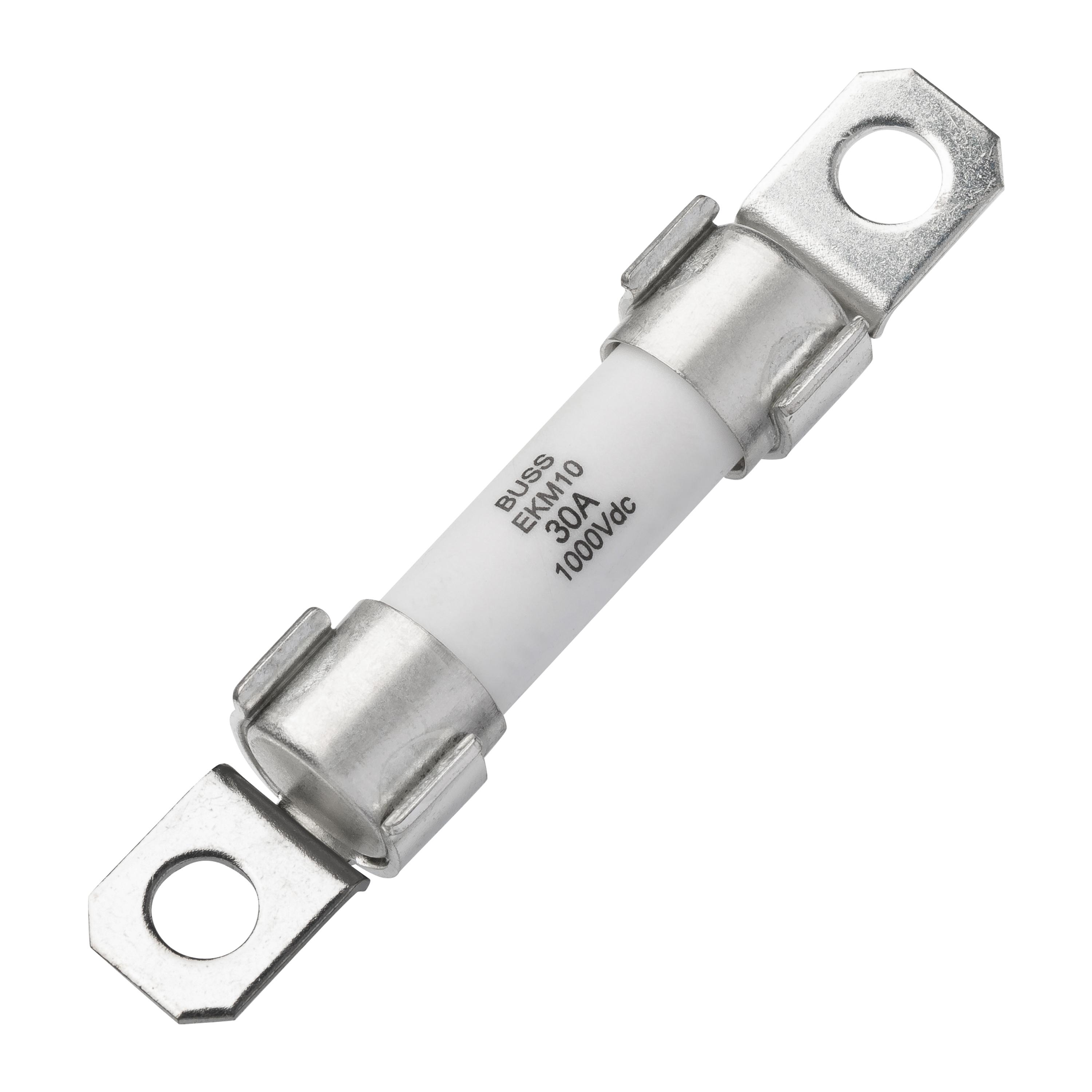 This is manufactured by Eaton - Electronics Division. The manufacturer part number is EKM10-15-AT. The product is rohs3 compliant. Whereas, the breaking capacity of the product at rated voltage is 50ka. 1 kvdc of DC voltage rating. The product has -40°c ~ 125°c operating temperature range. Moreover, the product comes in cylindrical, blade terminal (bolt). In addition, it is reach unaffected. The product is widely employed in electrical, industrial. The DC cold resistance of the item is 0.0072 ohms. It is shipped in box package . The product's diameters include 0.469" dia x 1.532" l (11.90mm x 38.90mm). It has a long 11 weeks standard lead time. Additionally, the product's output is 15a. Its typical moisture sensitivity level is not applicable. The product is available in bolt mount configuration. The product ekm10, is a highly preferred choice for users. It integrates a cartridge fuse type.