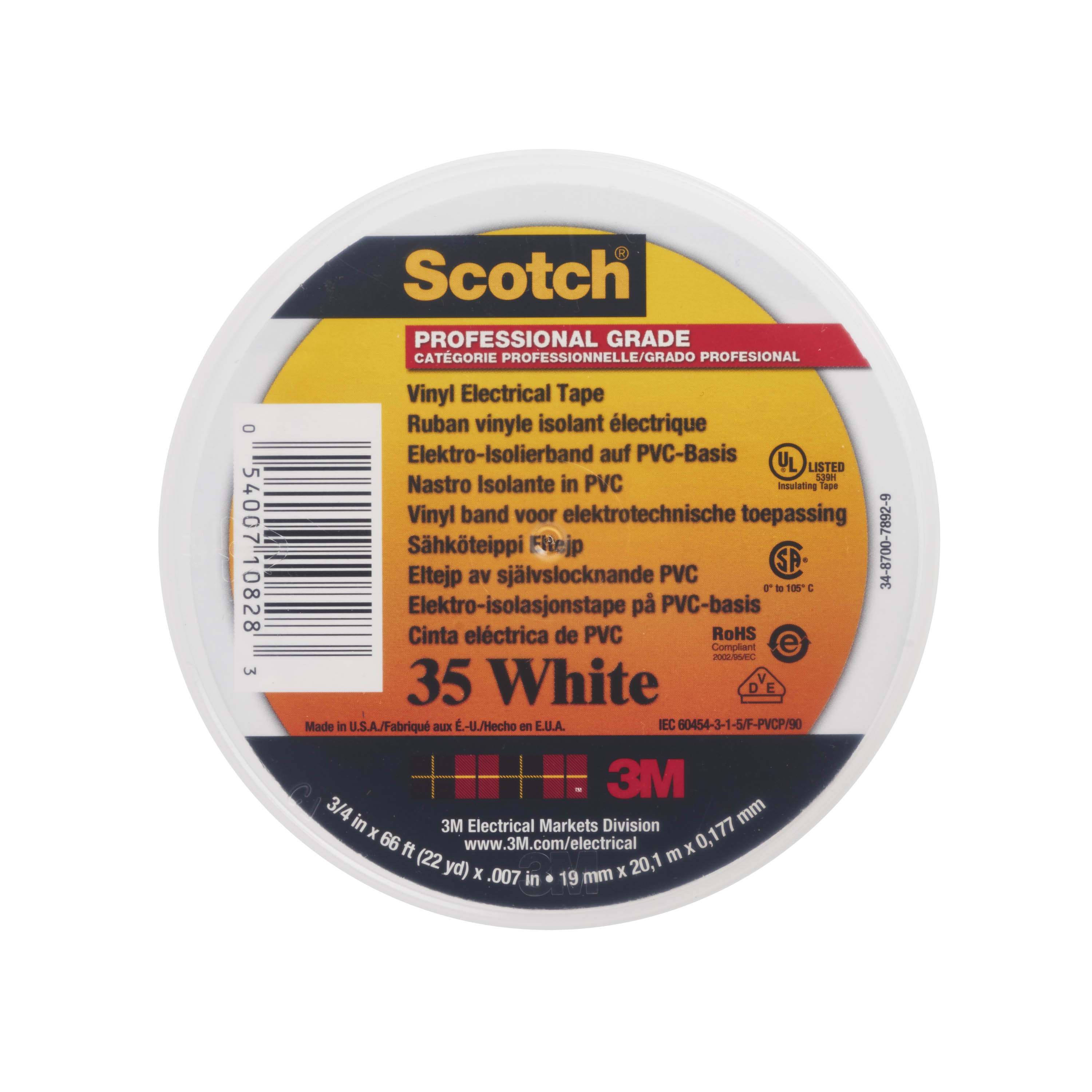 This is SCOTCH 35 White Electrical Insulation Tape 19mm x 20m 0.18mm Thick manufactured by 3M. The manufacturer part number is SCOTCH 35 BLANC 20 X 19. It is assigned with a trade name of scotch 35. It has a decent white colour. It is 0.18mm thick. Furthermore, the product is 19mm wide. Its accurate length is 20m. It has a maximum operating temperature of +105°c. Whereas, its backing is made using pvc material .