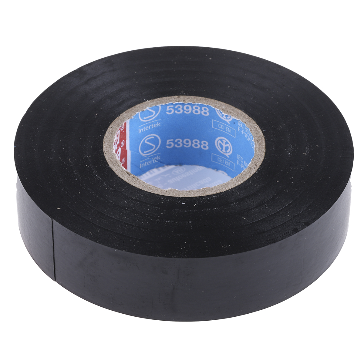 This is 53988 Black PVC Electrical Tape 19mm x 25m manufactured by Tesa. The manufacturer part number is 53988-00002-01. It is assigned with a trade name of tesa 53988. It has a decent black colour. It is 150mm thick. Furthermore, the product is 19mm wide. Its accurate length is 25m. It has a maximum operating temperature of +90°c. Whereas, its backing is made using soft pvc material .
