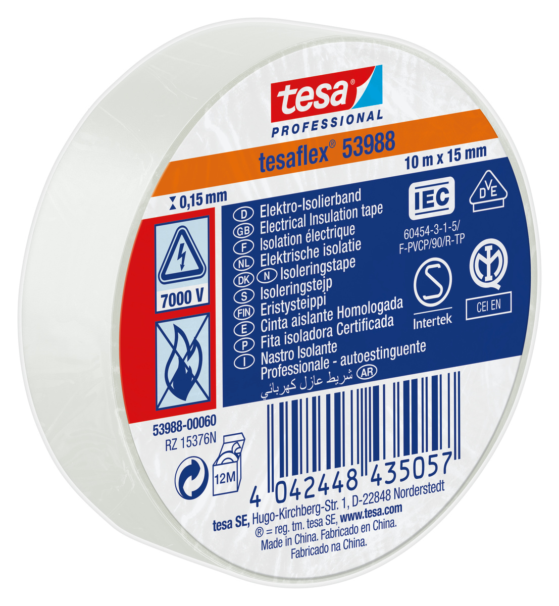 This is SPVC ELECTRICAL Silver PVC Electrical Insulation Tape 15mm x 10m manufactured by Tesa. The manufacturer part number is 53988-00060-01. It is assigned with a trade name of spvc electrical. It has a decent silver colour. It is 0.15mm thick. Furthermore, the product is 15mm wide. Its accurate length is 10m. Whereas, its backing is made using pvc material .