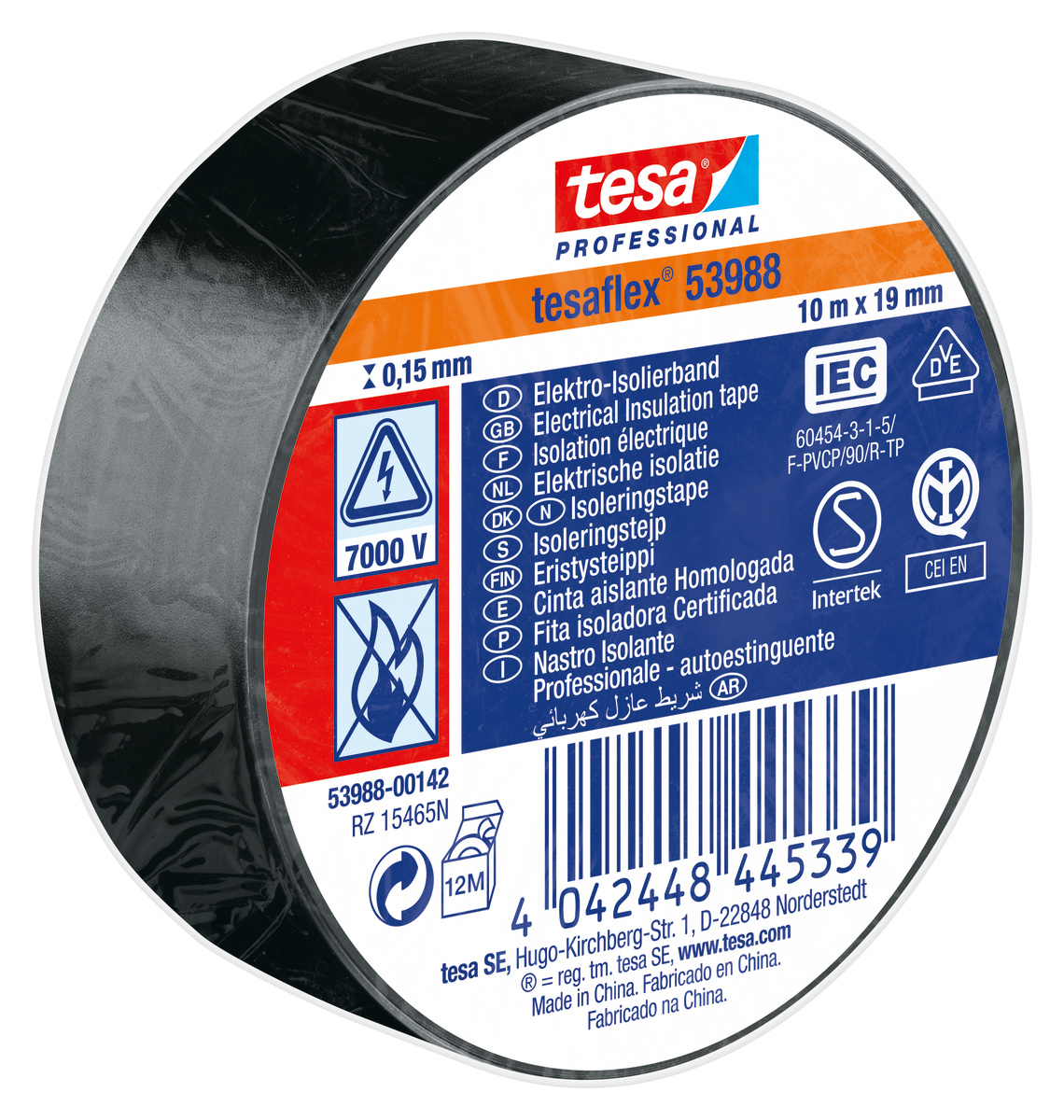 This is SPVC ELECTRICAL Black PVC Electrical Insulation Tape 19mm x 10m manufactured by Tesa. The manufacturer part number is 53988-00142-00. It is assigned with a trade name of spvc electrical. It has a decent black colour. It is 0.15mm thick. Furthermore, the product is 19mm wide. Its accurate length is 10m. Whereas, its backing is made using pvc material .