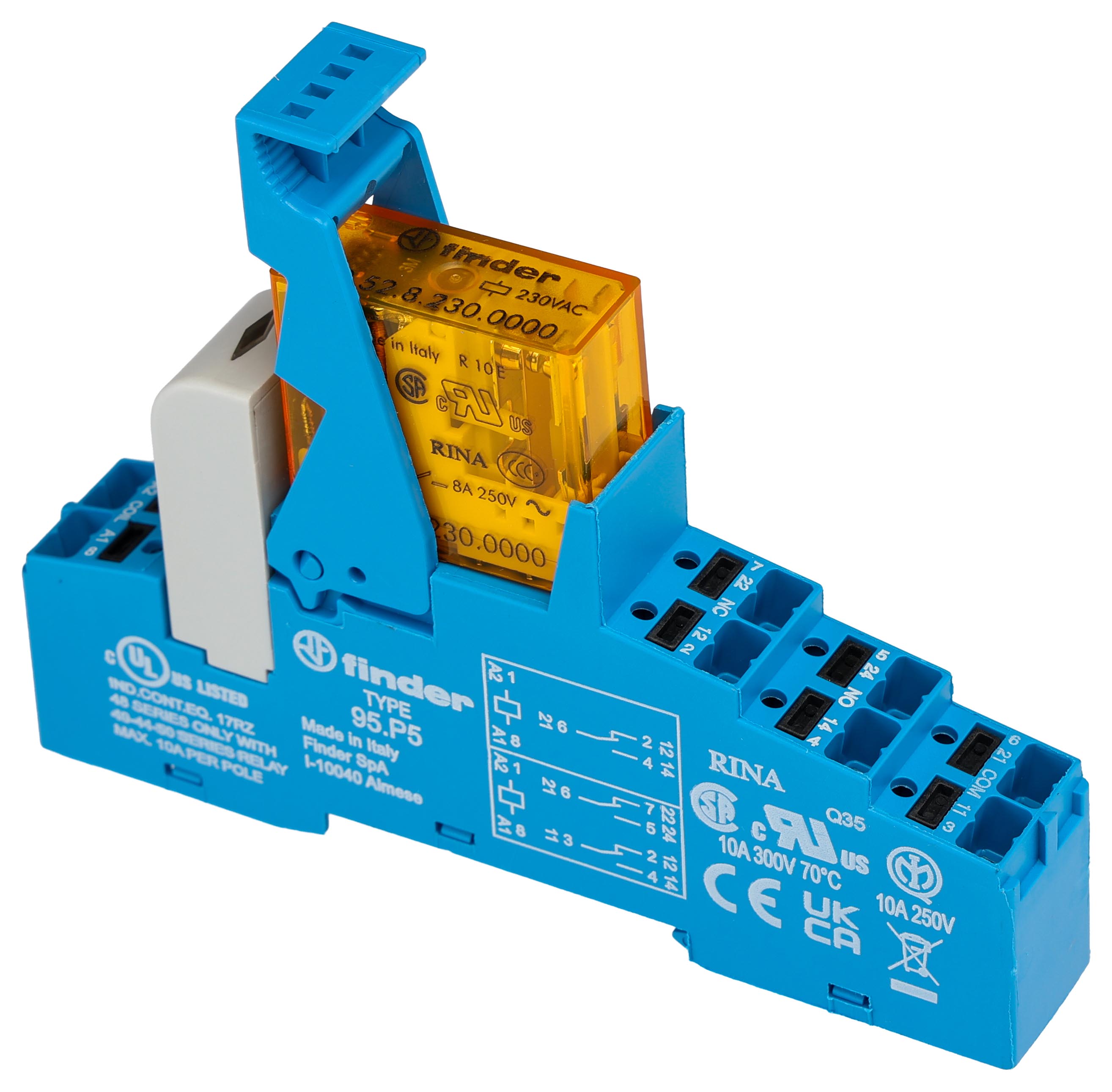 This is 48 Series[Blank] 230V ac DIN Rail Interface Relay Module DPDT-2C/0 Push In manufactured by Finder. The manufacturer part number is 48.P5.8.230.0060SPA. The given dimensions of the product include 15.8 x 75.3 x 95.5mm. The coil voltage of the product is 230v ac. It has a (dc) 12 ms, (ac) 7ms turn On time. The given turn off time is (dc) 12 ms, (ac) 4ms. It has about 7ma input current . It is capable of doing 100000 cycles in a lifetime . The product complies with all safety standards, such as ce, csa, culus, eac, ezu, gost, imq, lcie, lioyd's register, rina, vde. The product's switching voltage is 250 v ac → 400v ac. It has a maximum operating temperature of +70°c. The terminal is a push in type. This is basically a interface relay. The product has -40 → +70°c of operating temperature range. It has a 250/400v ac voltage load rating . The contact is equipped with dpdt-2c/0 configuration. The product comes in 75.3mm depth. It has a general purpose relay switching relay configuration . The product also provides special features, such as ac coils or dc sensitive coils, identification label, supply status indication & emc coil suppression module as standard. The product is available in din rail configuration. The product 48 series, is a highly preferred choice for users. It is a type of interface relay accessory. Its accurate length is 15.8mm. In addition, the height is 95.5mm. Whereas, the minimum operating temperature of the product is -40°c. The product has 250v ac of minimum input voltage. It has equipped with 2 poles. It has about 8a load current rating . 400v ac is the maximum voltage of the bespoke product. The product is made from sturdy silver alloy materials.