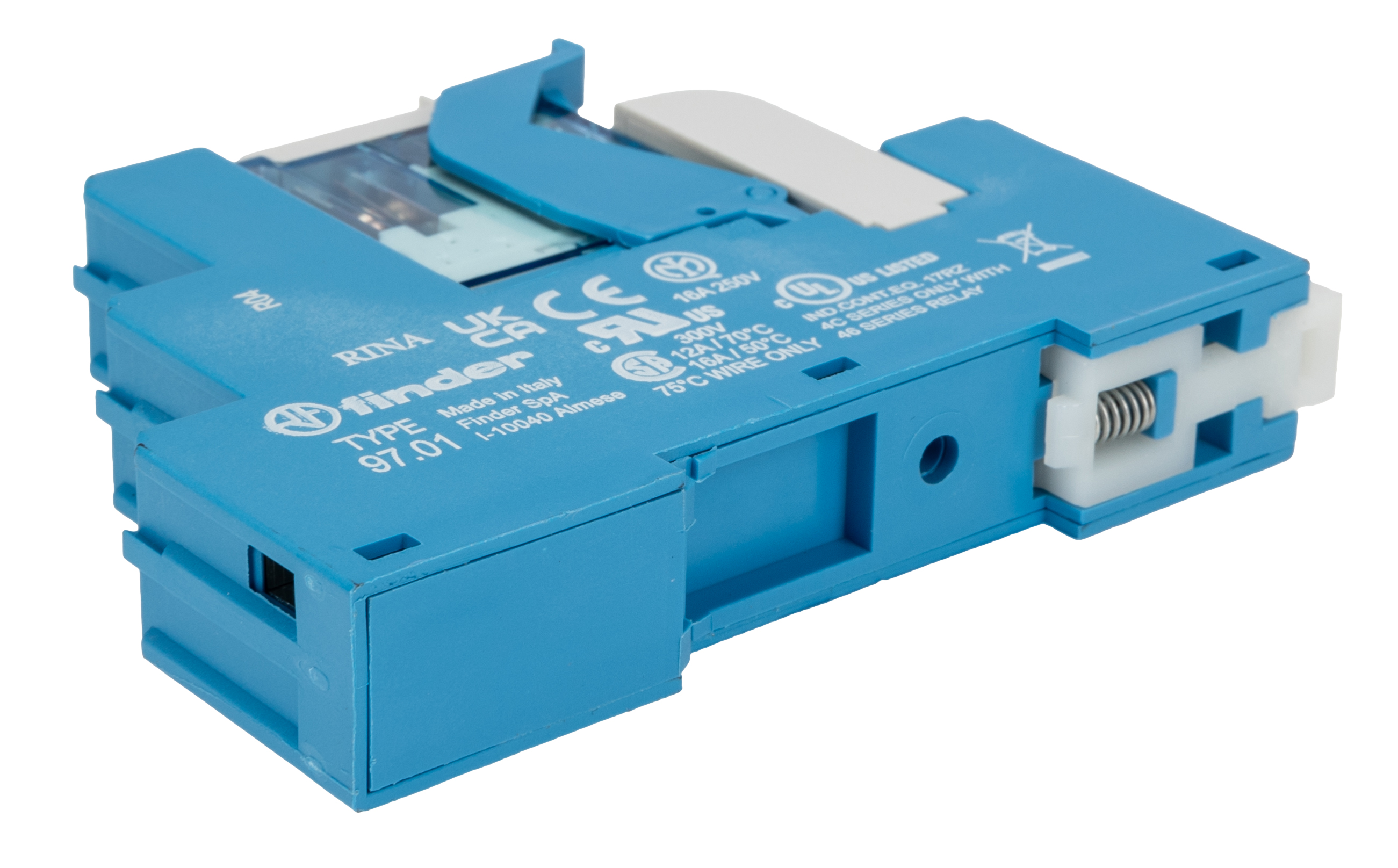 This is 24V dc SPDT Interface Relay Module Screw Terminal DIN Rail manufactured by Finder. The manufacturer part number is 4C.01.9.024.0050SPA. The given dimensions of the product include 81 x 15.8 x 64.6mm. The coil voltage of the product is 24v dc. It has a 15ms turn On time. The given turn off time is 12ms. It has about 20ma input current . It is capable of doing 10000000 cycles in a lifetime . The product complies with all safety standards, such as ce, eac. The product's switching voltage is 250 → 440v ac. Moreover, it has approximately 1200ω input resistance . It has a maximum operating temperature of +70°c. The terminal is a screw type. The product has -40 → +70°c of operating temperature range. The contact is equipped with spdt configuration. The product comes in 64.6mm depth. The product is available in din rail configuration. The product 4c series, is a highly preferred choice for users. It is a type of interface relay accessory. Its accurate length is 15.8mm. In addition, the height is 82.9mm. Whereas, the minimum operating temperature of the product is -40°c. It has equipped with 1 poles. The product is made from sturdy silver alloy materials.