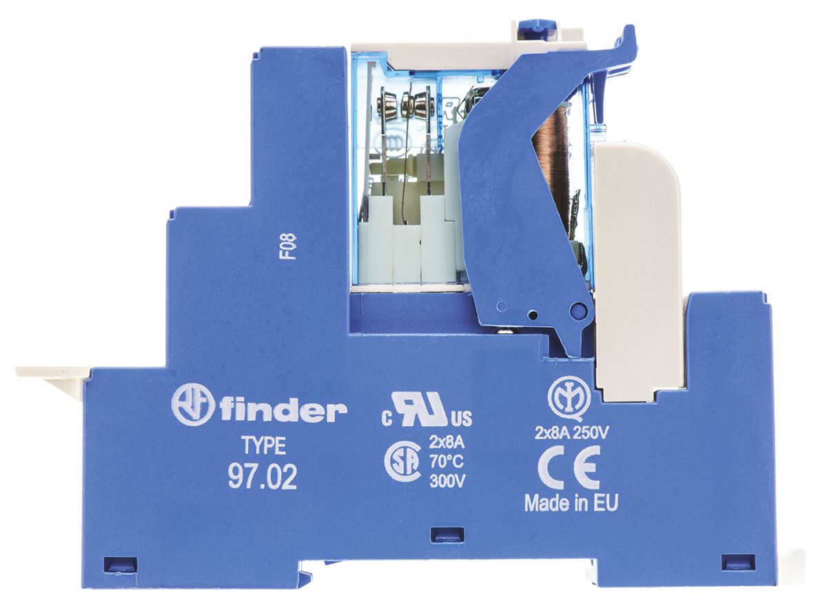 This is 24V dc DPDT Interface Relay Module Screw Terminal DIN Rail manufactured by Finder. The manufacturer part number is 4C.02.9.024.0050SPA. It is capable of doing 100000 cycles in a lifetime . It has a maximum operating temperature of +70°c. The given dimensions of the product include 81 x 15.8 x 64.6mm. The product is available in din rail configuration. The product's switching voltage is 250 → 440v ac. The product 4c series, is a highly preferred choice for users. The coil voltage of the product is 24v dc. The product comes in 64.6mm depth. In addition, the height is 82.9mm. The product has -40 → +70°c of operating temperature range. Its accurate length is 15.8mm. It has about 20ma input current . Whereas, the minimum operating temperature of the product is -40°c. It has a 10ms turn On time. The given turn off time is 10ms. The contact is equipped with dpdt configuration. Moreover, it has approximately 1200ω input resistance . It has equipped with 2 poles. The terminal is a screw type. The product is made from sturdy silver alloy materials.