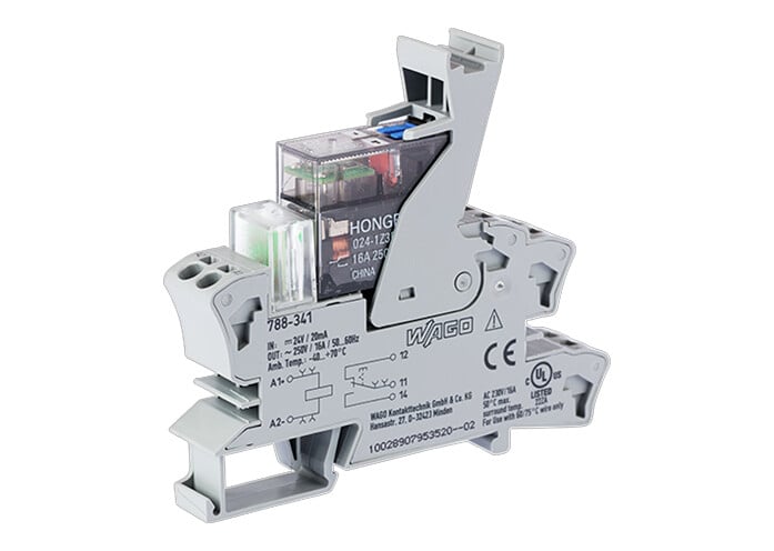 This is 788 Series Relay Module DIN Rail Mount 24V dc Coil SPDT 1-Pole 16A Load manufactured by WAGO. The manufacturer part number is 788-341. The product is available in din rail configuration. The product 788, is a highly preferred choice for users. The coil voltage of the product is 24v dc. The contact is equipped with spdt configuration. It has equipped with 1 poles. It has about 16a load current rating .