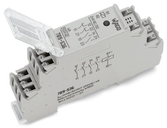 This is 789 Series Relay Module DIN Rail Mount 24V ac/dc Coil 4-Pole 4A Load manufactured by WAGO. The manufacturer part number is 789-536. The product 789, is a highly preferred choice for users. The coil voltage of the product is 24v ac/dc. It has equipped with 4 poles. It has about 4a load current rating . The product is available in din rail configuration.