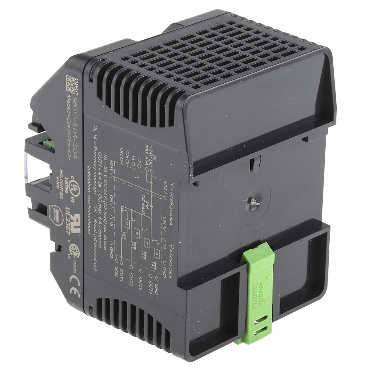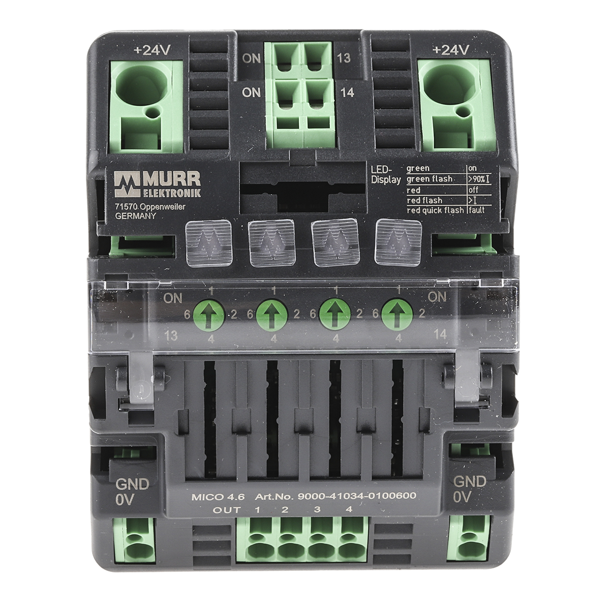 This is MICO Intelligent 24 V dc Circuit Protection 4 Channels 1 A 2 A 4 A 6 A manufactured by Murrelektronik Limited. The manufacturer part number is 9000-41034-0100600.