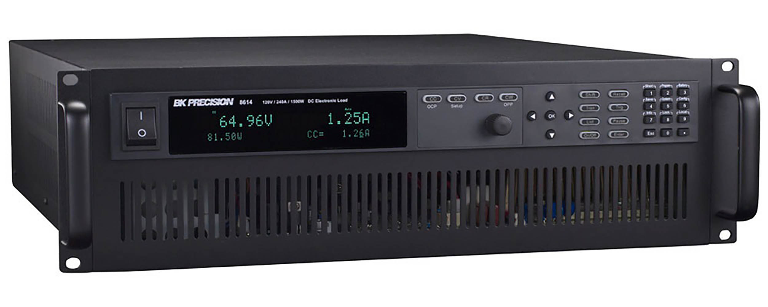 This is Electronic DC Load 8600 240 A 120 V 1500 W 6 m Programmable manufactured by BK Precision. The manufacturer part number is BK8614. It includes 3 u rack units . The product 8600, is a highly preferred choice for users. Load Type Specs- programmable. Additionally, it has a constant wattage mode range of 1500 w . It is offered with 240 a constant current mode range . In addition, it has a constant voltage mode range of 120 v . It has a 6 m constant resistance mode range .