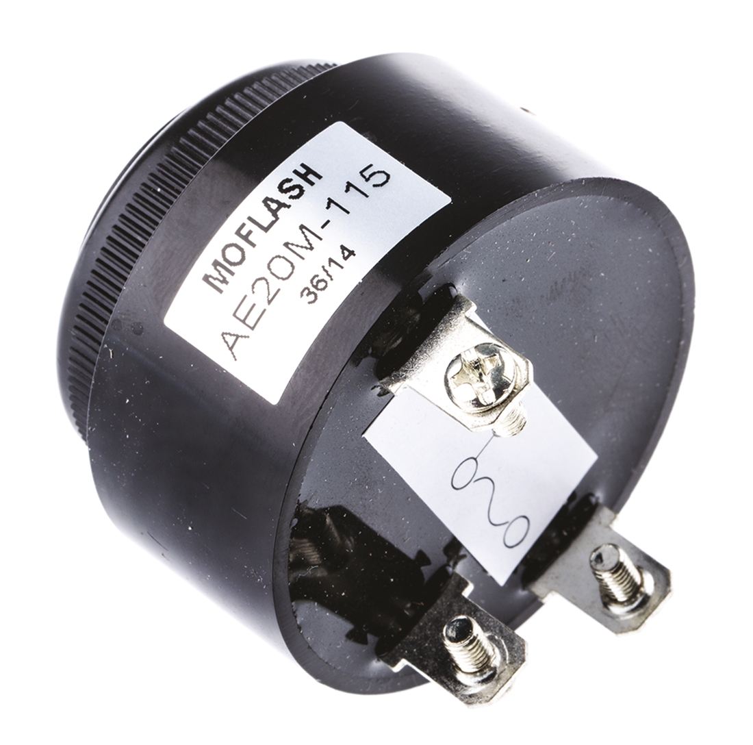 This is Black Panel Mount Buzzer 43 mm diameter 115 V ac 95dB at 1 Metre manufactured by Moflash. The manufacturer part number is AE20M-115. Its diameter is 43 mm. The product has +60°c maximum temperature. The housing has an adorable black colour. The product complies with all safety standards, such as ce certified ukca. The product also features robust abs plastic housing material. It is IP rated with ip55. This product harbours ac current. The product ae20m, is a highly preferred choice for users. It contains 95db decibels at 1 meter . The product is available in panel mount style. It has a/an continuous, pulse type tone . The product is tailored for buzzer type application . Features 115v ac supply voltage. It has 2 tones . While its minimum temperature is -20°c. It has 95db maximum decibels .