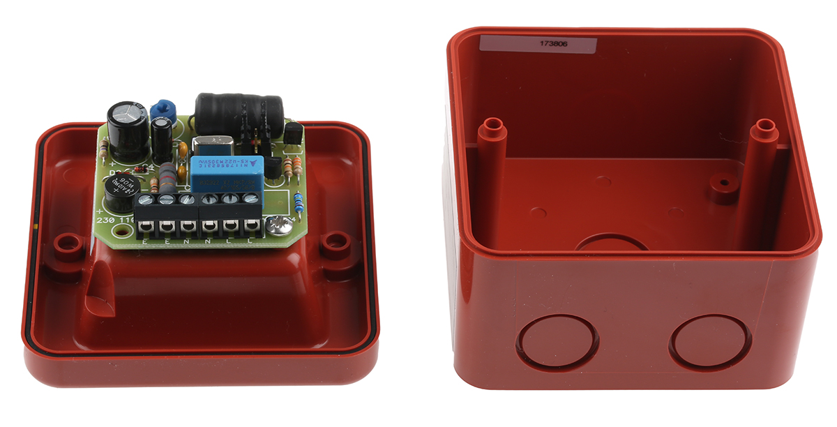 10-Tone Sounder - Sonora 2-stage alarm with volume control Automatically synchronising Reverse polarity diode protection 4 gland knockouts in side and back Standards EN54-3 by Vds