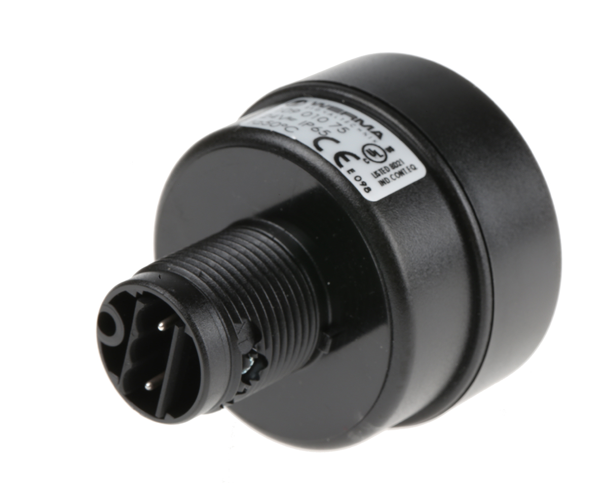 Werma Buzzer The Werma black, wall mount buzzer has a maximum sound output of 80dB. This buzzer is a 52mm size and has a pulse tone alarm system. This buzzer is designed for industrial use. It is supplied with a terminal screw connector. Features and Benefits The supply voltage is 24VAC/DC Operating temperature ranges between -20°C and 50°C Certifications IP65 rated ANSI/ESD S20.20:2014 BS EN 61340-5-1:2007