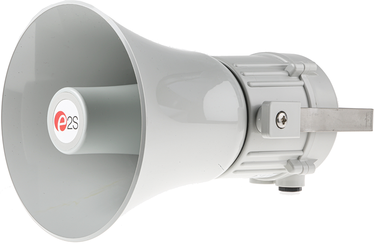 e2s High Output Sounder The e2s high output sounder is a 32-tone alarm with a sound output of 126dB(A) at a distance of up to 1m. It is a 3 stage alarm with volume control. It works on a supply voltage of 10VDC to 30VDC. The sounder has a grey body colour and is surface mount. Features and Benefits Automatic synchronisation on multi-sounder system Continuously rated Stainless steel fixings Unit can be mounted using external lugs or internal BESA compatible fixing positions Duplicate cable terminations (in and out for daisy-chain installations) Tropicalisation available on request Available with custom tone configurations and frequencies Programmable version available 45 alarm tones 4 remotely selectable stages Any tone can be assigned to Any stage User configurable continuous frequency tone Applications Fire alarm Security Process Control Certifications VdS approved to EN54-3 (CPD 89/106/EEC) UKOOA/PFEER compliant alarm tones UL approved GOST-R approved IP67 rated