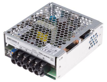 This is 70W Embedded Switch Mode Power Supply SMPS 14A 4.5 → 5.75V manufactured by TDK-Lambda. The manufacturer part number is RWS-100B-5. Additionally, the product is supplied with 1 outputs. The product has +70°c maximum temperature. The product is available in chassis mount configuration. The typical product's weight is 400g. Furthermore, the product is 94mm wide. While its minimum temperature is -10°c. Its accurate length is 39mm. It is a highly efficient product with an 77 %, 79 % of high efficiency. The product comes in 108mm depth. Its input voltage is 85 → 265 v ac, 120 → 370 v dc. The package is a sort of enclosed. Features a 5 v dc output voltage. Feature 70w of power rating. It carries 14a output current.