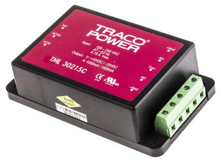 This is 30W Dual Output Embedded Switch Mode Power Supply SMPS 1A ±15V dc manufactured by TRACOPOWER. The manufacturer part number is TML 30215C. Additionally, the product is supplied with 2 outputs. The product has +60°c maximum temperature. The product is available in chassis mount configuration. The typical product's weight is 275g. Furthermore, the product is 64.7mm wide. While its minimum temperature is -25°c. Its accurate length is 112mm. It is a highly efficient product with an 72 → 80% of high efficiency. The product comes in 31mm depth. Its input voltage is 100 → 370 v dc, 85 → 264 v ac. The package is a sort of encapsulated. Features a ±15v dc output voltage. Feature 30w of power rating. It carries 1a output current.
