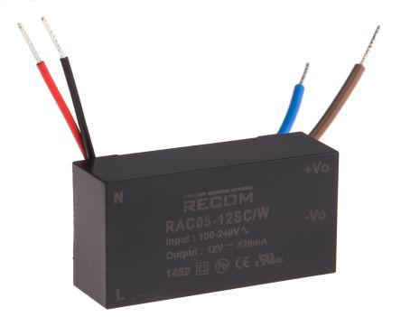 This is 5W Embedded Switch Mode Power Supply SMPS 420mA 12V dc manufactured by Recom. The manufacturer part number is RAC05-12SC/W. Additionally, the product is supplied with 1 outputs. Load Regulation - ±0.5%. It carries 420ma output current. The typical product's weight is 35g. It is a highly efficient product with an 76% of high efficiency. The product has +55°c maximum temperature. While its minimum temperature is -25°c. Carries 150mv ripple and noise. Its accurate length is 50.9mm. Furthermore, the product is 25.5mm wide. The product comes in 15.65mm depth. The MTBF values include >400 x 10³h. Features a 12 v dc output voltage. Feature 5w of power rating. Its input voltage is 80 → 264v ac. Has a line regulation of ±0.3%.