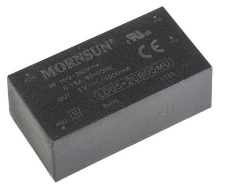 This is 5W AC-DC Converter 1A 5V dc Medical Approved manufactured by RS Pro. The manufacturer part number is 144-6281. Additionally, the product is supplied with 1 outputs. The product has +70°c maximum temperature. The product is available in pcb mount configuration. The typical product's weight is 43g. While its minimum temperature is -25°c. Its accurate length is 53.8mm. Furthermore, the product is 28.8mm wide. The product comes in 19mm depth. Its input voltage is 264 v ac, 370 v dc. The package is a sort of encapsulated. Medical Approval - yes. Features a 5v dc output voltage. Feature 5w of power rating. It carries 1a output current.