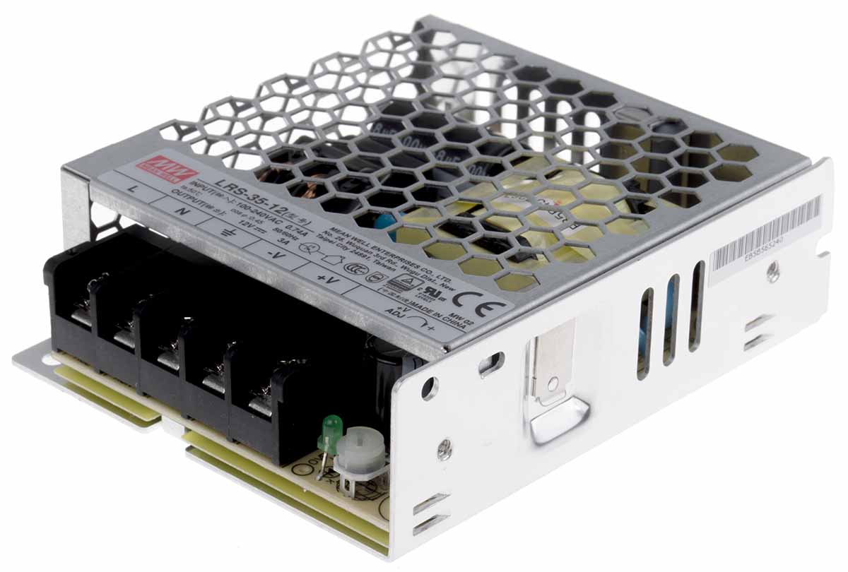 This is 36W Embedded Switch Mode Power Supply SMPS 3A 12V dc manufactured by Mean Well. The manufacturer part number is LRS-35-12. Additionally, the product is supplied with 1 outputs. The product has +70°c maximum temperature. The product is available in chassis mount configuration. The typical product's weight is 230g. It is a highly efficient product with an 86% of high efficiency. While its minimum temperature is -30°c. Its accurate length is 99mm. Furthermore, the product is 82mm wide. The product comes in 30mm depth. Its input voltage is 120 → 373 v dc, 85 → 264 v ac. The package is a sort of enclosed. Features a 12v dc output voltage. Feature 36w of power rating. It carries 3a output current.