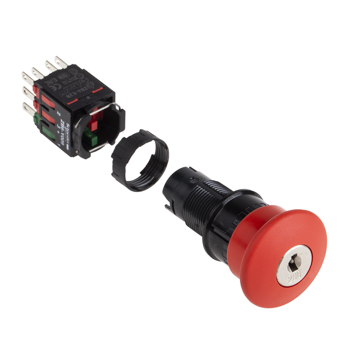 This is Harmony Red Key Reset 30mm Mushroom Head Emergency Button manufactured by Schneider Electric. The manufacturer part number is XB6AS9349B. Better World Verification Options - green premium. Is it a better world product? yes. Illumination Option no. The product is available in panel mount configuration. It is IP rated with ip65. It has tpst pole and throw configuration. The product harmony, is a highly preferred choice for users. It has a decent red colour. Moreover, the product has a nominal 240 v ac, 250v dc voltage rating. It includes a push button of round shape . In addition, the height is 30mm. Furthermore, the product is 30mm wide. The product comes in 41.5mm depth. In addition, the push button diameter of the product is about 16mm . Its bezel material is plastic . Whereas its cut-out diameter is 16mm. Pushbutton is manufactured from highly rugged and reliable plastic material. The push button has key release actuation mechanism. The contact is equipped with 2no + 2nc configuration. It provides slow brake switch operation.