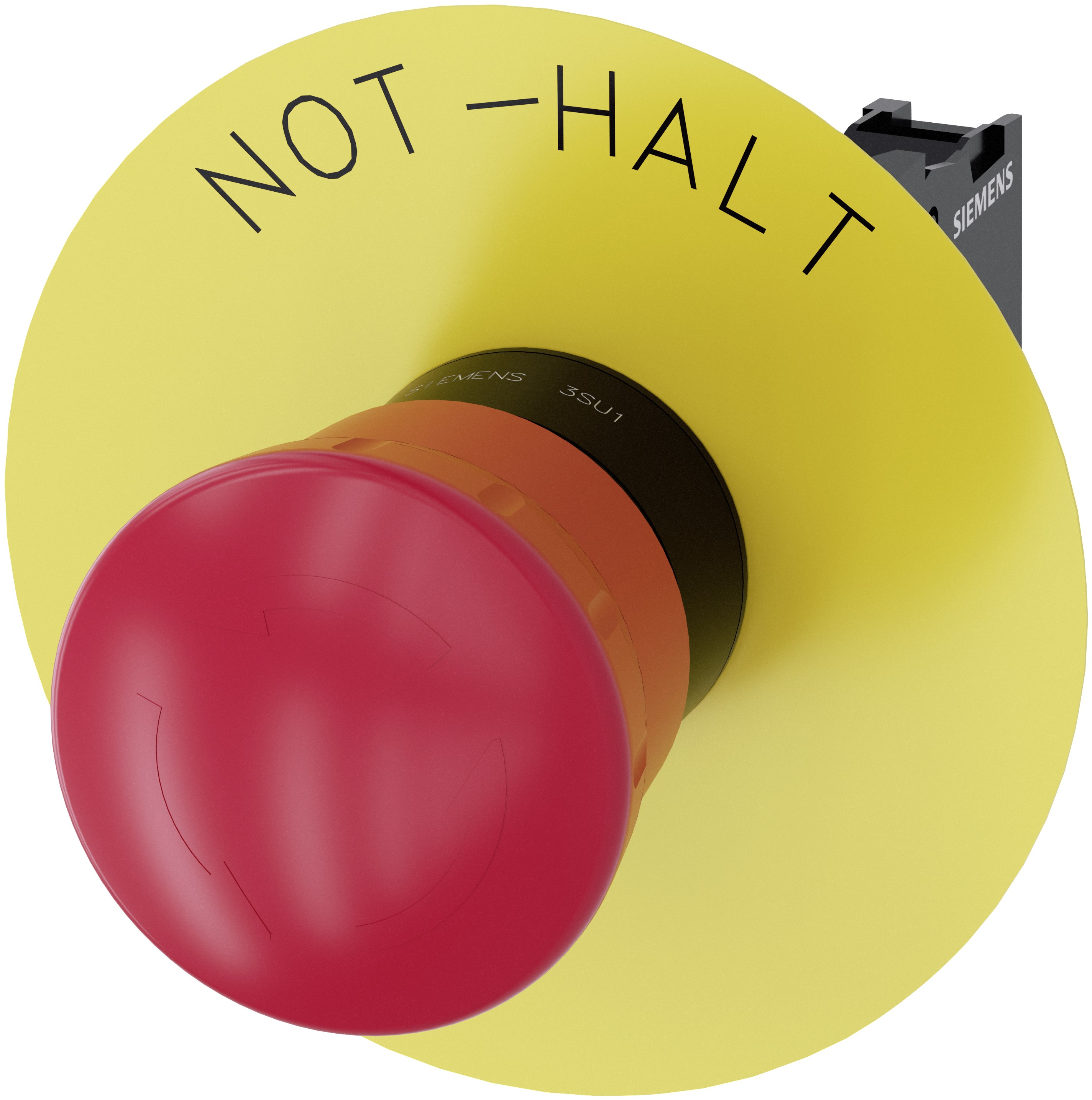 This is SIRIUS ACT Red Twist to Reset 40mm Mushroom Head Emergency Button manufactured by Siemens. The manufacturer part number is 3SU1100-1HB20-1CH0. Is it a better world product? yes. Illumination Option no. The product is available in panel mount configuration. It is IP rated with ip20. The product sirius act 3su11, is a highly preferred choice for users. It has a decent red colour. Moreover, the product has a nominal 5 → 500v voltage rating. Pushbutton is manufactured from highly rugged and reliable plastic material. The product comes in 95mm depth. Its bezel material is plastic . Whereas its cut-out diameter is 22mm. The contact is equipped with 1nc configuration. The push button has twist release actuation mechanism.