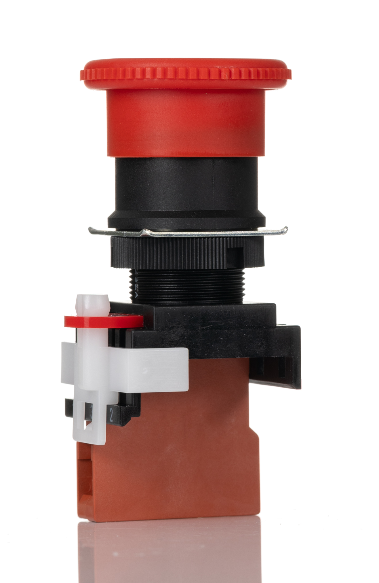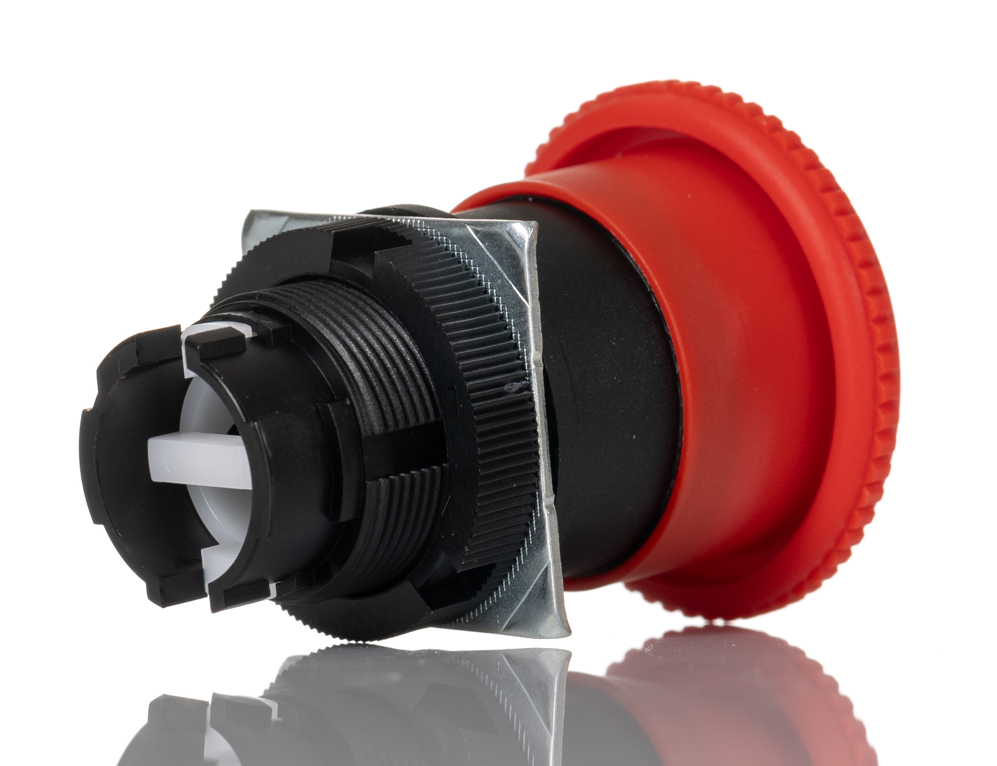 This is Emergency Button Twist to Reset Red 40mm Mushroom Head manufactured by Omron. The manufacturer part number is A22E-M-01. The housing has an adorable red colour. In addition, the push button diameter of the product is about 40mm . Illumination Option no. The product is available in panel mount configuration. It is IP rated with ip65. It has spst pole and throw configuration. The product a22e, is a highly preferred choice for users. It has a decent red colour. Pushbutton is manufactured from highly rugged and reliable plastic material. It has no high-quality auxiliary contact . Whereas its cut-out diameter is 22mm. The contact is equipped with 1nc configuration. The push button has twist release actuation mechanism. It provides turn to reset switch operation.