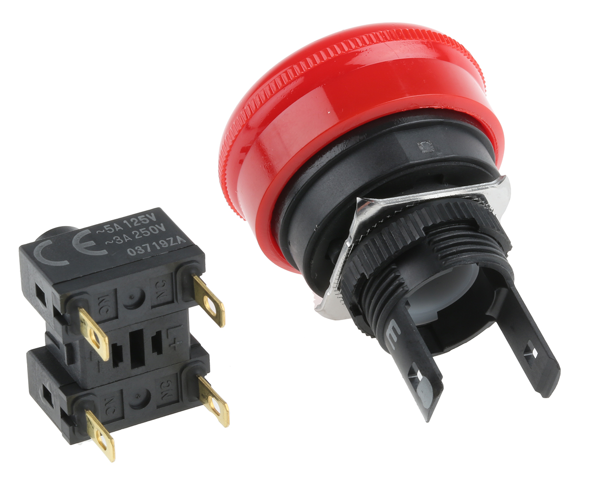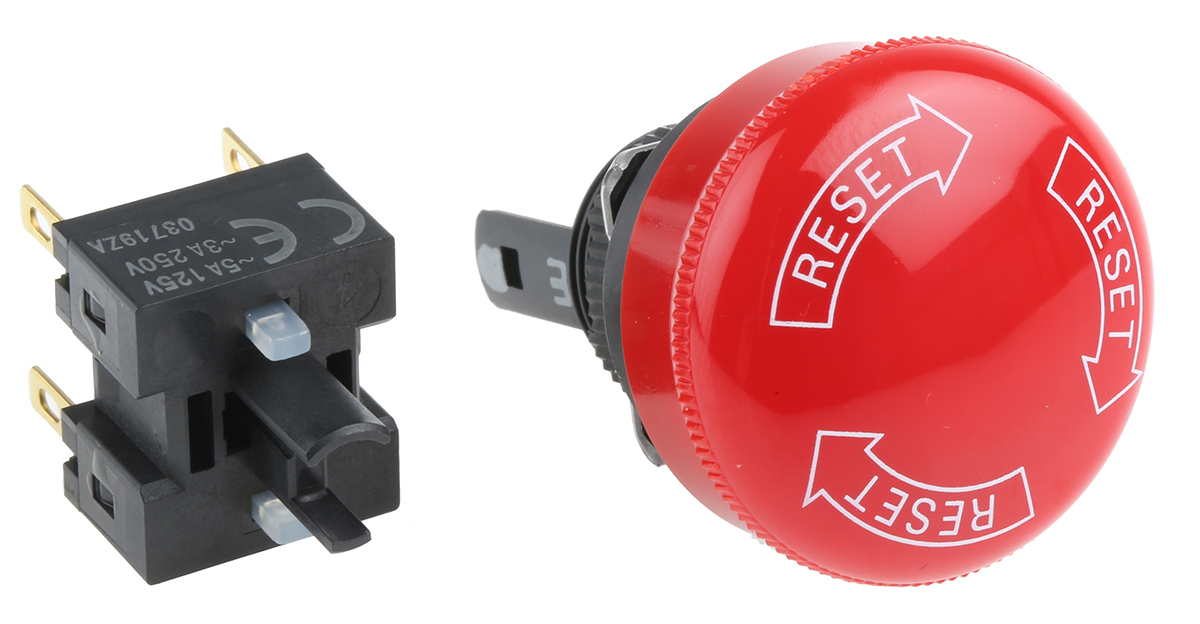 This is Red Twist to Reset 30mm Mushroom Head Emergency Button manufactured by Omron. The manufacturer part number is A165E-S-02. In addition, the push button diameter of the product is about 30mm . Illumination Option no. The product is available in panel mount configuration. It is IP rated with ip65. It has dpst pole and throw configuration. The product a165e, is a highly preferred choice for users. It has a decent red colour. Pushbutton is manufactured from highly rugged and reliable plastic material. Furthermore, the product is 18mm wide. The product comes in 48.5mm depth. It has no high-quality auxiliary contact . Whereas its cut-out diameter is 16mm. The contact is equipped with 2nc configuration. It features 5a supply current. The push button has twist release actuation mechanism. It provides turn to reset switch operation.