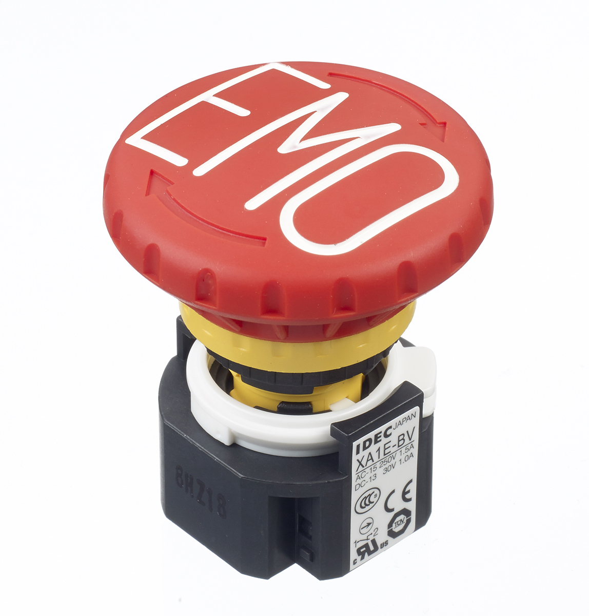 This is XA-16mm E-Off EMO push lock/turn rese manufactured by Idec. The manufacturer part number is XA1E-BV403RH-EMO. Illumination Option no. The product is available in panel mount configuration. It is IP rated with ip65. The product xa, is a highly preferred choice for users. It has a decent red colour. In addition, the height is 48.5mm. Whereas its cut-out diameter is 16mm. The contact is equipped with 3 nc configuration. The push button has twist release actuation mechanism.