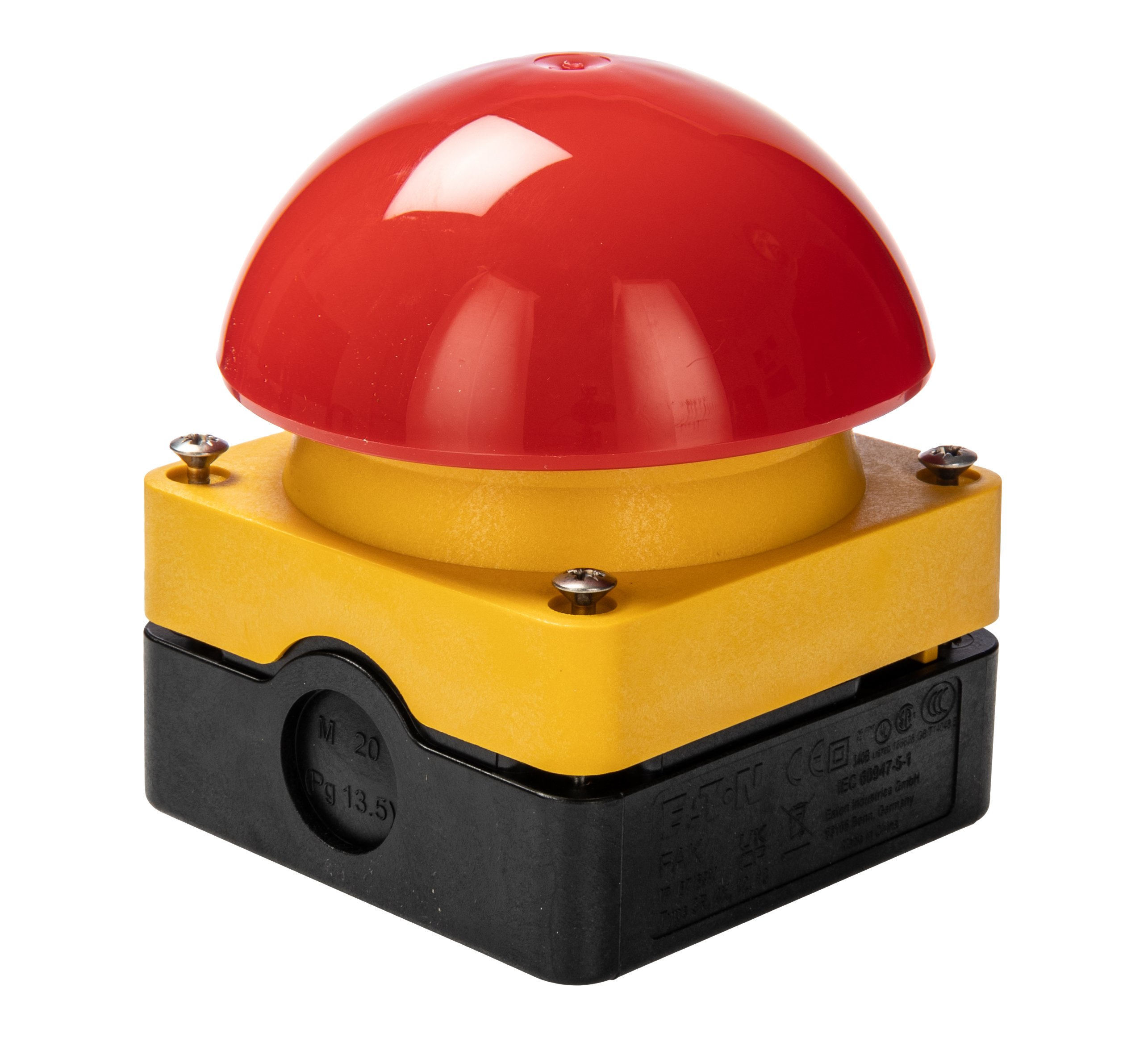 This is FAK Red Mushroom Push Button Complete Unit NC Maintained Screw manufactured by Eaton. The manufacturer part number is 229747 FAK-R/V/KC01/IY. The housing has an adorable black, yellow colour. In addition, the push button diameter of the product is about 94mm . The product is available in surface mount configuration. It is IP rated with ip67, ip69k. The product fak, is a highly preferred choice for users. It has a decent red colour. It includes a push button of round shape . In addition, the height is 85mm. Furthermore, the product is 85mm wide. The product comes in 100mm depth. The contact is equipped with spst configuration. The push button has maintained actuation mechanism. It provides pull to release switch operation.