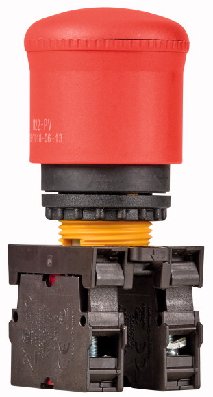 This is RMQ Titan Emergency Stop Push Button Panel Mount 22.5mm Cutout 2NC IP67 IP69K manufactured by Eaton. The manufacturer part number is 190929 M22-PV-K02. Illumination Option no. The product is available in panel mount configuration. It is IP rated with ip66, ip69. The product m22, is a highly preferred choice for users. It has a decent red colour. Moreover, the product has a nominal 24v voltage rating. It includes a push button of round shape . Pushbutton is manufactured from highly rugged and reliable plastic material. Whereas its cut-out diameter is 22mm. The contact is equipped with 2nc configuration. The push button has pull release actuation mechanism.