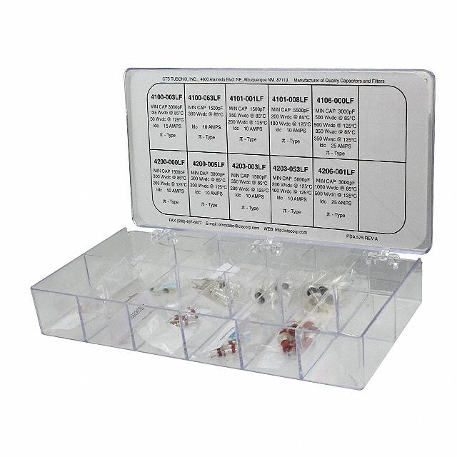This is manufactured by Tusonix a Subsidiary of CTS Electronic Components. The manufacturer part number is 4100-901. The tusonix a subsidiary of cts electronic components's product offers user-desired applications. The emi/rfi filters (lc, rc networks) is designed to provide robust applications in a variety of specific settings. The product is available in through hole configuration. It is assigned with possible HTSUS value of 8548.00.0000. The product is rohs compliant. In addition, it is reach unaffected. In addition, case is the available packaging type of the product. Its typical moisture sensitivity level is 1 (unlimited). The product is designated with the ear99 code number. It also includes axial packages. Available in 50 pieces (10 values - 5 each) quantity.