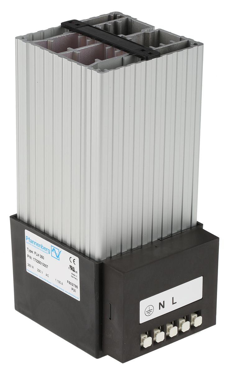 This is Enclosure Heater 250W 230 V ac 183.5 x 85 x 104mm manufactured by Pfannenberg. The manufacturer part number is FLH250 17025010007. Its surface temperature is approximately 70°c . In addition, the height is 183.5mm. Furthermore, the product is 85mm wide. The product comes in 104mm depth. It has a 50 m³/h, 61m³/h air flow rate. Features 230v ac supply voltage. Its output power is 250w.