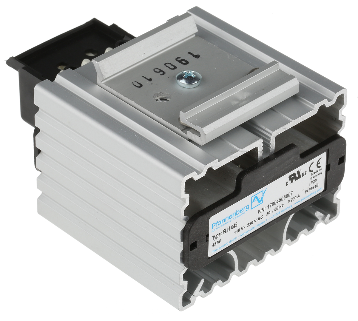 This is Enclosure Heater 45W 110 → 250 V ac 65 x 70 x 50mm manufactured by Pfannenberg. The manufacturer part number is FLH045 17004505007. Its surface temperature is approximately 105°c . It has about 40w input power rating . In addition, the height is 65mm. Furthermore, the product is 70mm wide. The product comes in 50mm depth. Its output power is 45w. Features 110 → 250v ac supply voltage. It has a 50 m³/h, 61m³/h air flow rate.