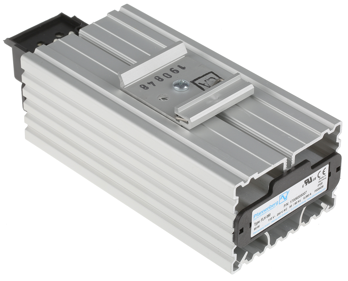 This is Enclosure Heater 60W 110 → 250 V ac 140 x 70 x 50mm manufactured by Pfannenberg. The manufacturer part number is FLH060 17006005007. Its surface temperature is approximately 105°c . It has about 60w input power rating . In addition, the height is 140mm. Furthermore, the product is 70mm wide. The product comes in 50mm depth. Its output power is 60w. Features 110 → 250v ac supply voltage.