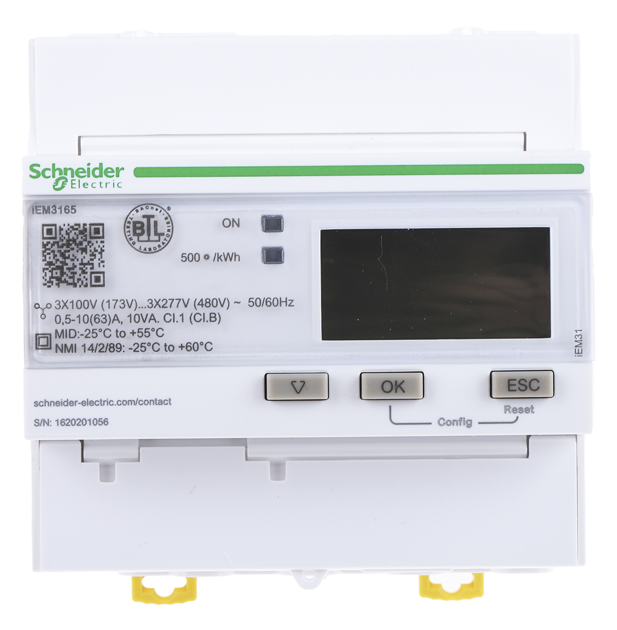 This is Acti 9 iEM3000 LCD Digital Power Meter 9-Digits 3 Phase manufactured by Schneider Electric. The manufacturer part number is A9MEM3165. Is it a better world product? yes. It features a remarkable lcd display. A bespoke product is a robust electronic meter with various applications. It has a minimum 0kwh measurement capacity . In addition, it has a pulse output characteristic yes . The product acti 9 iem3000, is a highly preferred choice for users. Its measurement range is 0 → 99999999.9 kwh, maximum of 63a . It contains 9 digits . Better World Verification Options - green premium. It has a maximum 63 a, 99999999.9 kwh measurement . The product comes in 69mm depth. The product has +55°c maximum temperature. The product complies with ce, culus, en 50470-3, iec 60529, iec 61010, iec 61036, iec 61557-12, iec 62053-21, iec 62053-23, mid conforming to en 50470-1, mid conforming to en 50470-3, ul 61010-1. While its minimum temperature is -25°c. Whereas it is comprised of 3 phases.