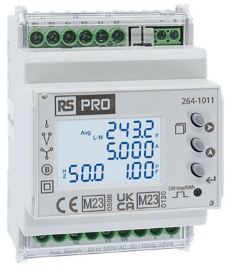 147→415 (Phase) V ac, 47→63Hz, 10 mA→5A, 85→240 (Phase and Neutral) V acV ac