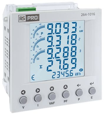 This is 1 3 Phase LCD Energy Meter Type Energy Meter manufactured by RS PRO. The manufacturer part number is 264-1016. Additionally, the product is supplied with 1 (pulse) outputs. It features a remarkable lcd display. A bespoke product is a robust energy meter meter with various applications. Moreover, its cutout is 91.5mm in width . The product consists of 1 x (rj45 3phase current transformer plug ) 3 x (voltage) and neutral inputs. It has a maximum 415 (phase) v ac, 240 (phase and neutral) v ac, 0.330mv 65hz measurement . It contains 8 digits . Its measurement range is 143→415 (phase) v ac, 45→65hz, 330mv, 100→240 (phase and neutral)v ac . Its digit height is about 6.35 mm . It has a/an modbus rs485 type communication port . Its meter accuracy is ±0.5 (current) %, ±0.5 (voltage) %, ±class b (active energy) . The product comes in 50mm depth. The product has +55°c maximum temperature. In addition, it has a pulse output characteristic yes . While its minimum temperature is -10°c. Its cutout height is 91.5mm . Whereas it is comprised of 1, 3 phases. It has a minimum 143 (phase) v ac, 100 (phase and neutral) v ac, 45 hz, 2ma measurement capacity .