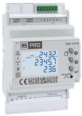 This is 3 Phase LCD Energy Meter Type Energy Meter manufactured by RS PRO. The manufacturer part number is 264-1018. Additionally, the product is supplied with 2 (pulse) outputs. It features a remarkable lcd display. A bespoke product is a robust energy meter meter with various applications. Moreover, its cutout is 70mm in width . The product consists of 2 x (rj45 3phase current transformer plug ), 1 x (voltage in and neutral), 1 x (voltage out and neutral) inputs. It has a maximum 415 (phase) v ac, 240 (phase and neutral) v ac, 0.330, 65hz measurement . While its minimum temperature is -10°c. Its measurement range is 173→415 (phase) v ac, 45→65hz, 330mv, 100→240 (phase and neutral)v ac . Its digit height is about 6.35 mm . It has a/an modbus rs485 type communication port . Its meter accuracy is ±0.5 (current) %, ±0.5 (voltage) %, ±class b (active energy) . The product comes in 66mm depth. The product has +55°c maximum temperature. In addition, it has a pulse output characteristic yes . Its cutout height is 118.5mm . Whereas it is comprised of 3 phases. It has a minimum 173 (phase) v ac, 100 (phase and neutral) v ac, 45 hz, 2ma measurement capacity .